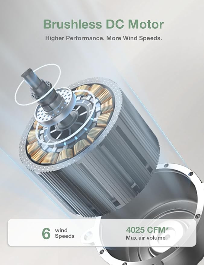 - Rich airflow: the fan blade length of 16 inches, with the new silent DC motor, the maximum speed can reach 900RPM, the maximum air flow reaches 2187CFM, creating a comfortable airflow environment for you.