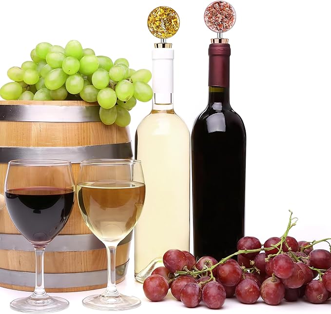 - Wine bottle stoppers feature a round shaped of topper with some designs, a plated shaft and flexible rubber gaskets,different patterns that is a great way to help you or your guest spot which bottle is which on the party or gathering.