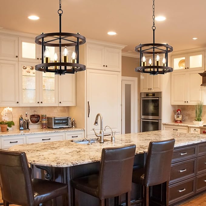 - 【Size&compatible Bulb】Lamp body size H15 "x D13" Wire 47 "Adjustable height, kitchen island lighting requires 4 E12 neutral incandescent lamp, led or cfl bulb, which can be fully dimmed when used with dimmable bulb and compatible dimming switch. (THE BULB IS NOT INCLUDED)