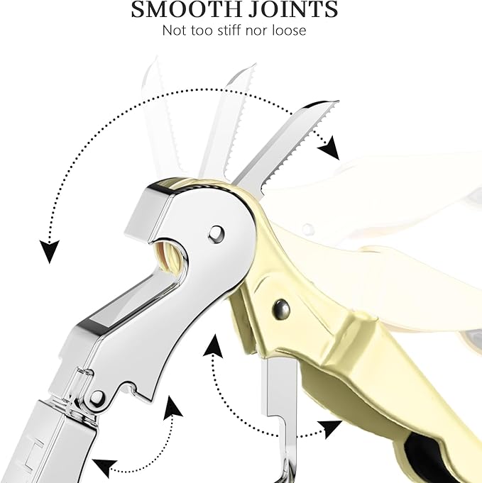 - MULTITOOL WINE OPENER: Made from 420 stainless steel and featuring a durable zinc alloy handle. It includes a classical double-hinged design that helps you pull the cork from the bottle with no effort. Featuring a built-in foil cutter and bottle cap opener, everything you need to open a bottle of wine or beer is conveniently and easily available to you in one tool