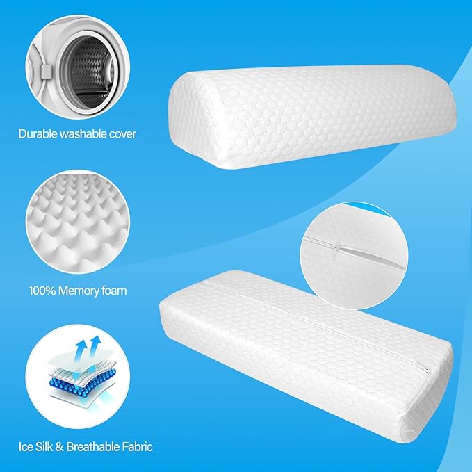 Half Moon Bolster Pillow for Legs, Knees, Lower Back and Head, Lumbar Support Pillow for Bed,Knee Pillow For Side Sleepers,Sleeping | Semi Roll for Ankle and Foot Comfort - Machine Washable Cover