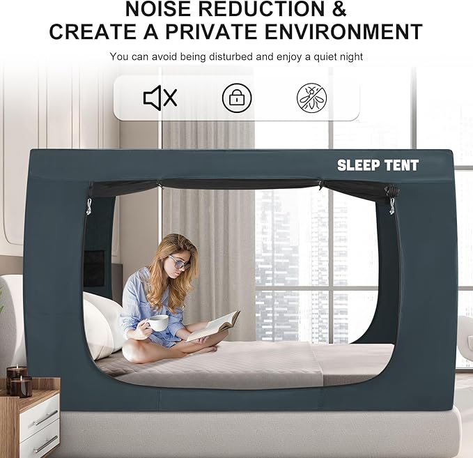 Bed Tent Queen Bed Canopy Dream Tents for Indoor Portable Blackout Tents Privacy Space Warm Breathable Sleeping Tents for Kids and Adult(Navy Blue,Mattress Not Included) Reducing Light