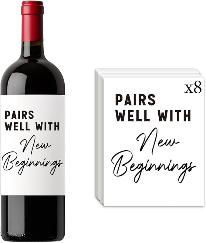 8 Pcs New Beginnigs Wine Labels, New Job New Home Retirement Graduation Wedding Gifts for Women Men, Housewarming Gifts New Home, Pairs Well with New Beginnigs Wine Bottle Stickers Labels
