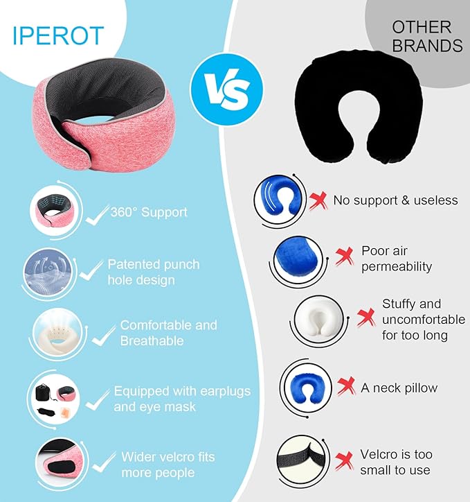 - Travel Pillow : The travel neck pillow includes pink neck pillow &1 black eye mask & 1 orange ear buds.The travel pillow features a chin-wrapping curve that conforms to the contours of your neck and head, providing unparalleled comfort and support. Allows you to maintain an upright posture when resting on the seat, reducing neck, shoulder and back discomfort when traveling by car or airplane