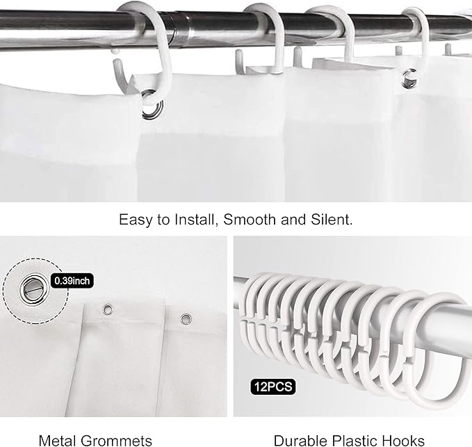 - WHAT’S INCLUDE: 1 shower curtain and 12 plastic hooks.
