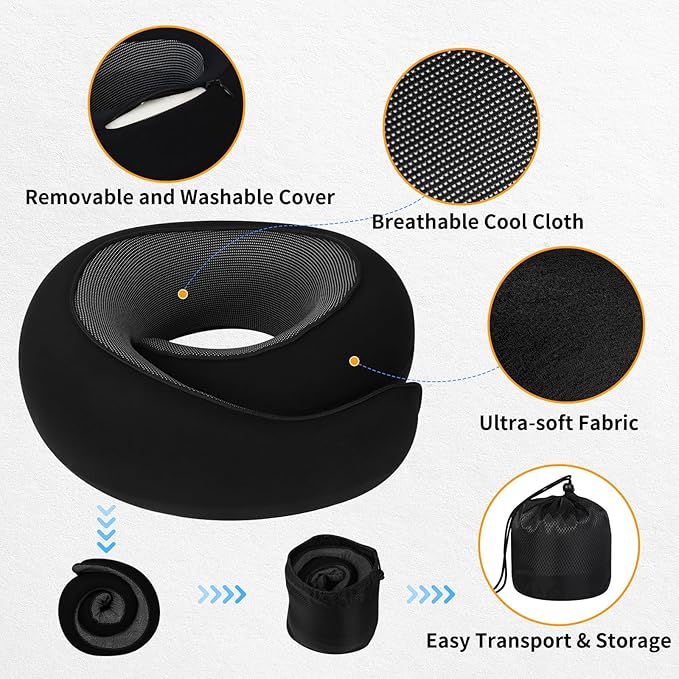 - Washable & Comfortable: This neck pillow for traveling features a removable, washable outer layer for easy cleaning. Made from breathable cotton, it's more comfortable than other travel pillows for airplanes, sweat-absorbent, and skin-friendly, ensuring a pleasant feel even after hours of use