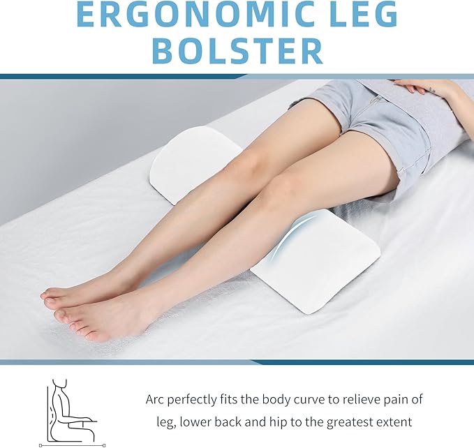 - Body Support: This knee pillow for back sleeping is designed with a semi-circular shape to provide precise support for all parts of the body. Placement under the knees reduces pressure on the spine, while placement behind the back enhances lumbar support. Use under the ankles to elevate the feet, promote blood circulation and reduce varicose veins
