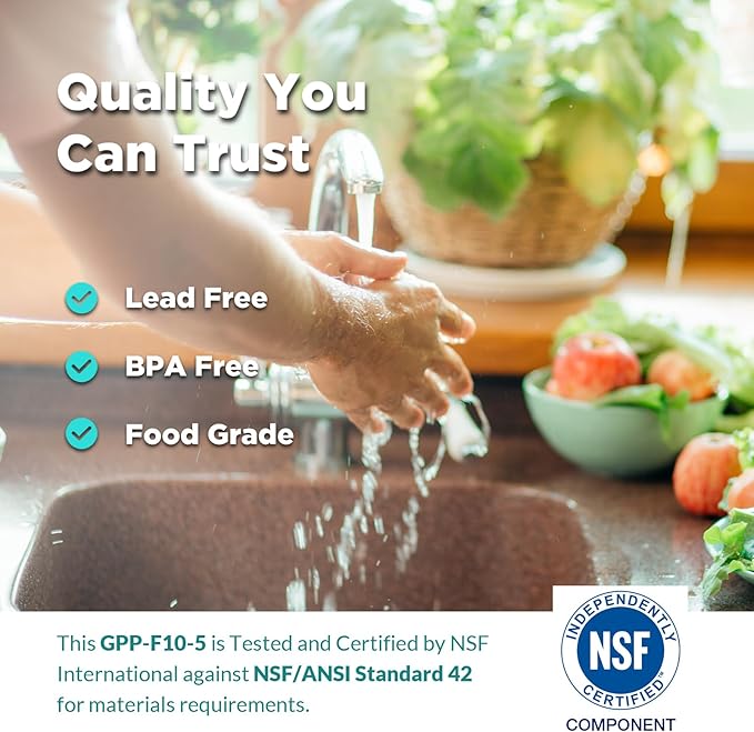 - Highly Quality Filtration: Food Grade material meets, 100% pure polypropylene microfibers with NSF certified, ensures the quality of your drinking water