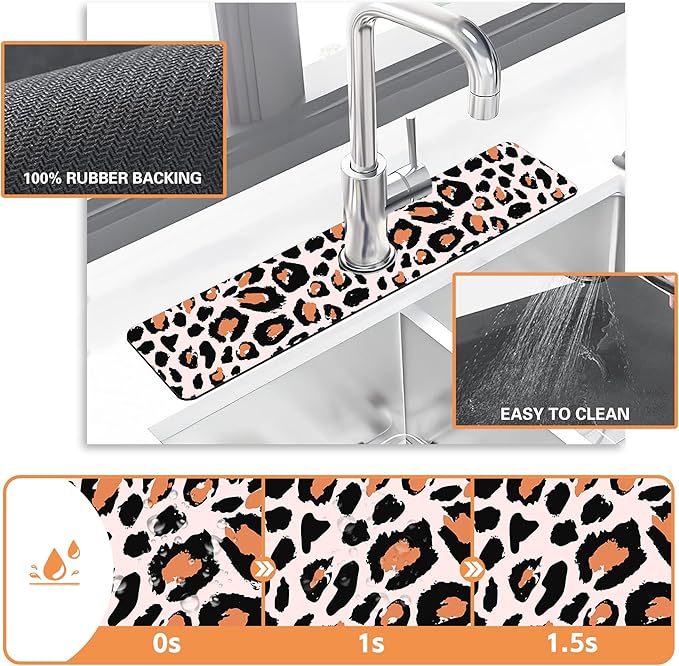 Kitchen Sink Splash Guard Faucet Mat Leopard Rosettes Sink Splash Guard Behind Faucet,1 PC Soft Diatom Mud Non-Slip Mat -for Kitchen,Sink Mat,Dish Drying Mat,Bathroom Faucet Mat 23.5"X5.5"