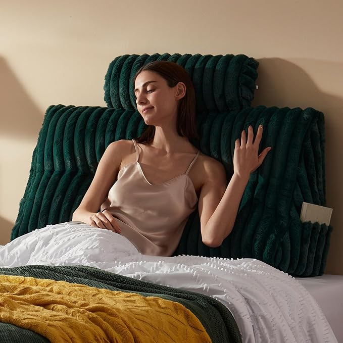 Faux Fur Headboard Pillow with 2 Pack Neck Roll Pillow Large Headboard Pillow Soft and Supportive with Removable Cover (Green, Twin)