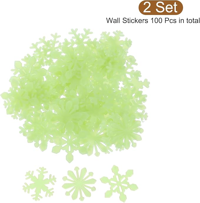 uxcell 100pcs Glow in The Dark Snowflake Fluorescent Plastic Wall Stickers Adhesive Murals Decals for Home Art Ceiling Bedroom Wall Decorations, Yellow
