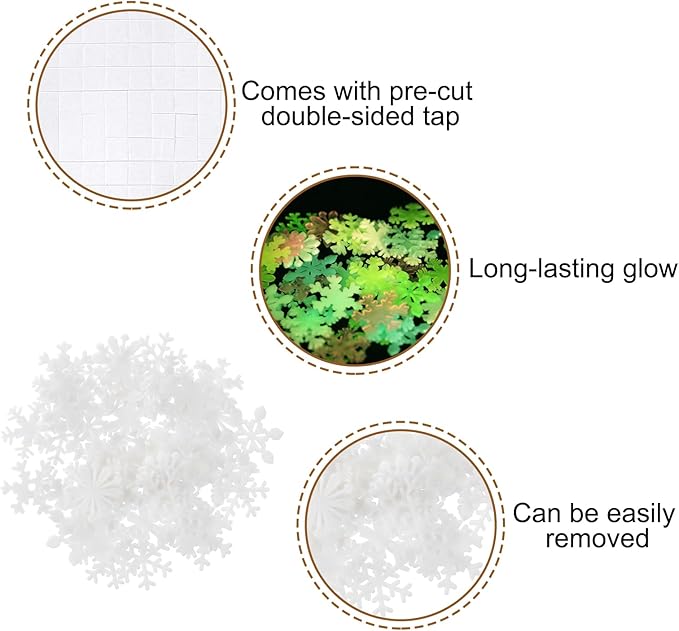 - Wide Application: Glow-in-the-dark stickers are suitable for Christmas parties, birthday parties, weddings, and daily decorations in living rooms, bedrooms, children's rooms, classrooms, etc.