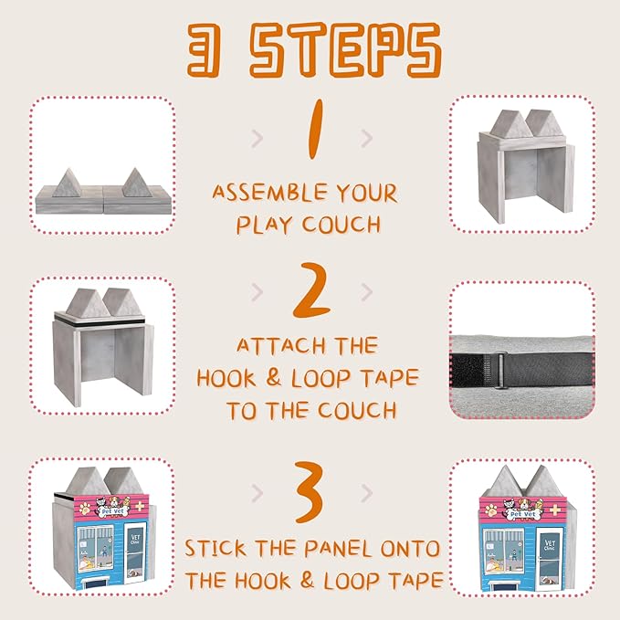 - Effortless Setup, Endless Fun: With the included 12-foot hook-and-loop tape, installation is a breeze on any play couch or suitable furniture. Switching themes is quick and easy, keeping the excitement fresh and new.