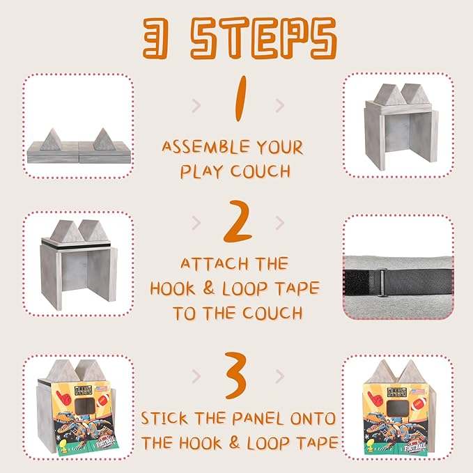 - Effortless Setup, Endless Fun: With the included 12-foot hook-and-loop tape, installation is a breeze on any play couch or suitable furniture. Switching themes is quick and easy, keeping the excitement fresh and new.