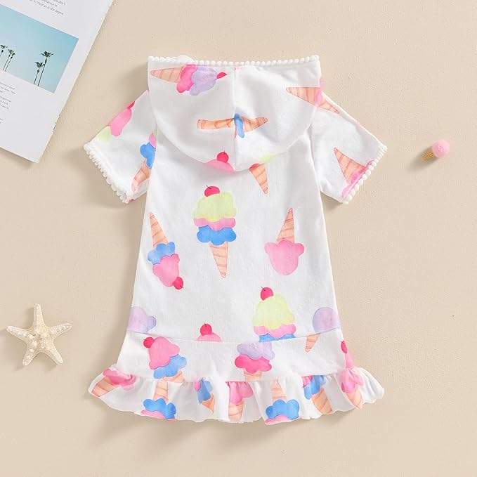 Toddler Beach Towel with Hood Kids Waffle Swim Cover Up Bath Towel Surf Poncho Boys Girls Hooded Beach Towel (White Ice Cream, 3-4 Years)