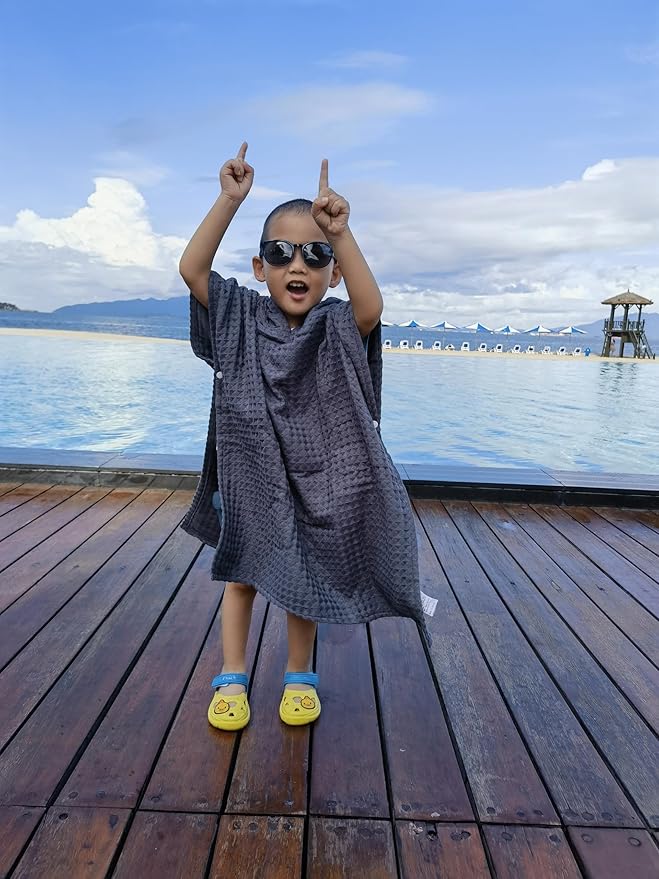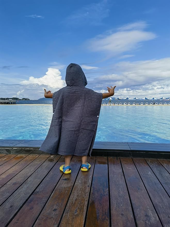 - WEARABLE PULLOVER DESIGN: Easy to open and close snaps design, let children free hands, never be worry about the towel slipping off anymore, increase warmth and comfort.