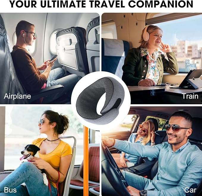 Travel Pillow, Neck Pillow Travel, Memory Foam Neck Pillow Travel Neck Pillow for Traveling, Neck Support Travel Pillows for Long Flights, Neck Travel Pillows for Airplanes, Grey