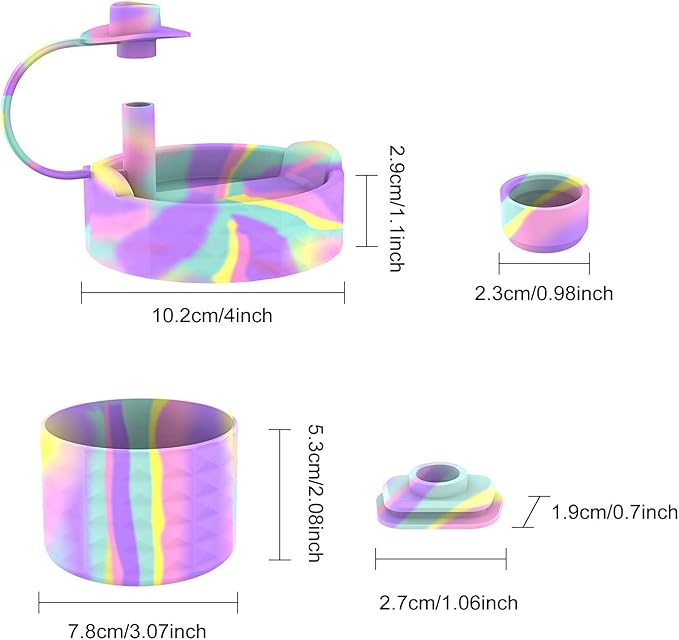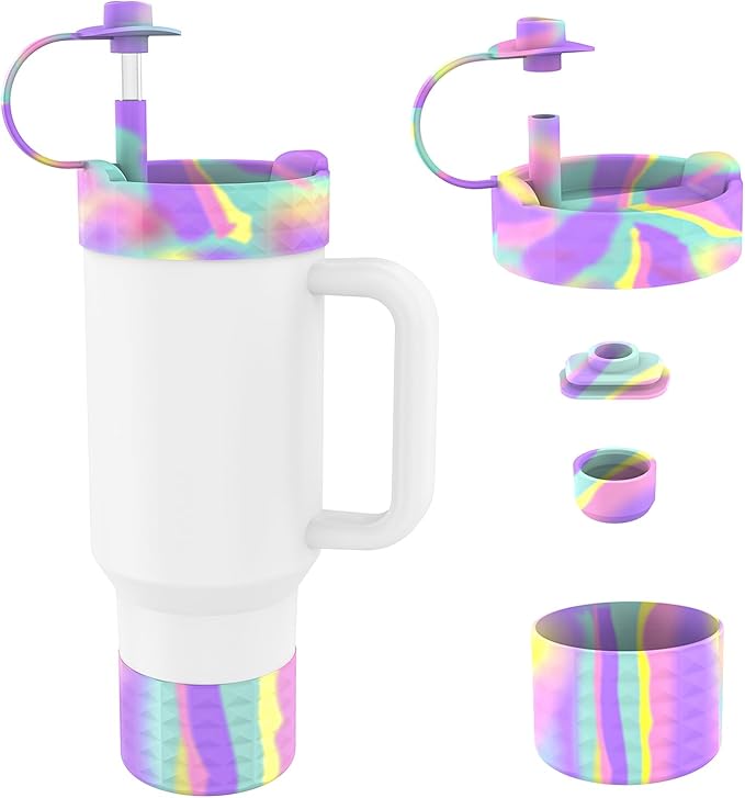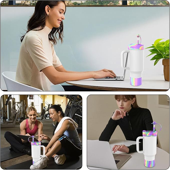 Protective Silicone Bottle Cover Set for Stanley Quencher H2.0 40 30 20 oz Tumbler with Handle & Iceflow, Anti-Scratch Cover Boot for Stanley Cup Accessories BPA Free (C)