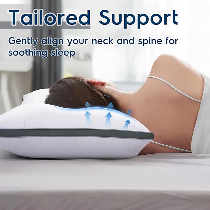 - Just-right Support: Infused with premium down alternative clusters, viewstar standard pillow ensures optimal support for your head and neck, cradling snugly without too much sinkage. It helps encourage neutral spine alignment and will respond nicely to your head position during the night. Meanwhile, it provides sufficient cushioning to promote comfort for truly restorative slumber. Ideal for sleepers who prefer a firmer pillow with a medium-to-high loft