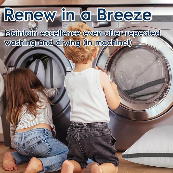 - Hassle-free Use: Thoughtfully made of machine-washable materials that can go right into your home washing machine and dryer. Easy to maintain and will bloom like new even after repeated washing. Sturdy stitching adds to its longevity and prevents fill from escaping. Measuring 20" x 30" in queen pillows set of 2; come vacuum-sealed and will quickly expand to their full size within 24 hours