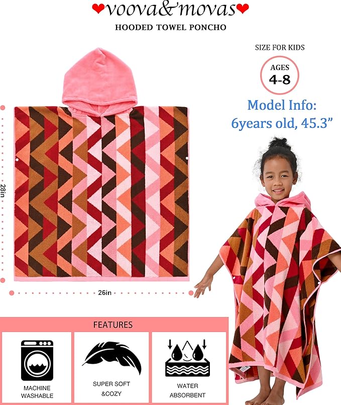 VOOVA & MOVAS Kids Towels Poncho with Hood (4-8Years) - Thick 500GSM,Soft, Absorbent, 100% Cotton Swim Towel, Perfect for Bathroom | Pool | Swim, Jacquard,Red