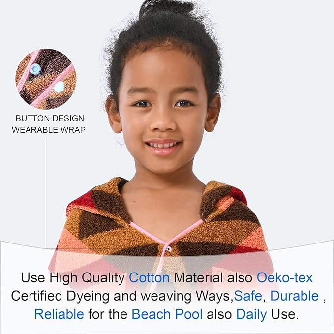 - Multi-Use : Our Thick bath Beach towels with hood are perfect for home bath time and pool adventures, The beautiful patterns make bathing enjoyable , while the hood keeps warm and dry after swimming, These versatile hooded beach towels Poncho are a great companion for beach fun too