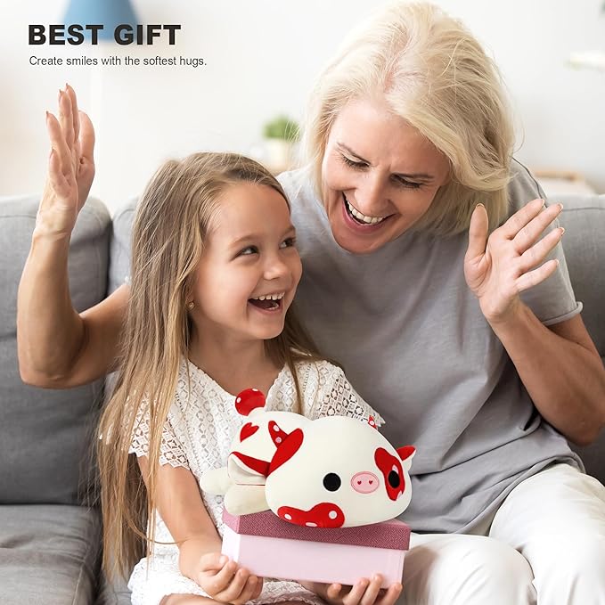 Onsoyours Cute Cow Plushie, Soft Stuffed Mushroom Cow Squishy Plush Animal Toy Pillow for Kids (Red Mushroom Cow, 9")