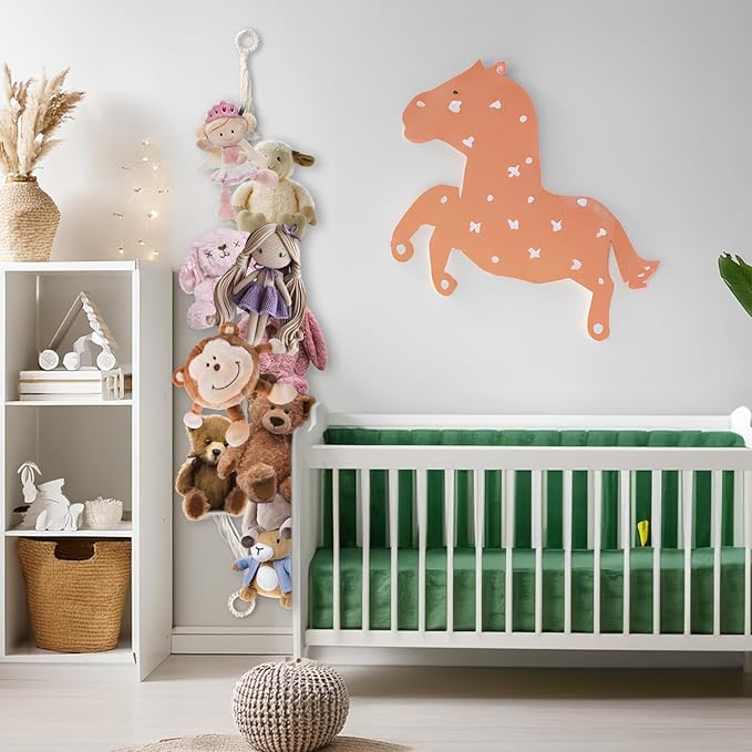 - Space-Saving Design: The plush toy display chain can be hung horizontally or vertically to meet your different needs. This hanging stuff animal organizer helps free up space and prevents the room from being messy, making it a perfect solution for tidy storage. Easily hang it on any wall or door to instantly create an organized display of your baby’s accessories