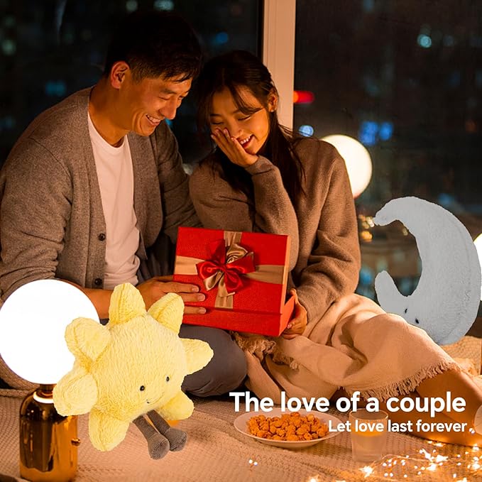 - Soft Material: Sunshine plush and moon plush toy are crafted with meticulous care from high-quality plush fabric, offer a tactile experience that is soft and delicate. Filled with premium PP cotton, ensuring durability and preventing deformation, so that children can hug them with both comfort and safety.