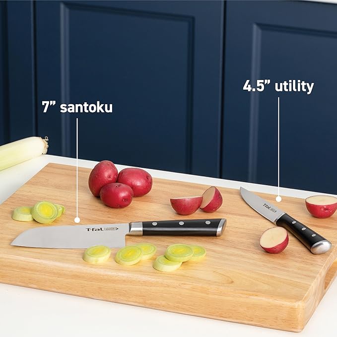 4-Piece set of T-fal Ultimate Hard Anodized Nonstick Fry Pan 10 and 12 Inch with Ice Force Stainless Steel Santoku Knife and Utility knife