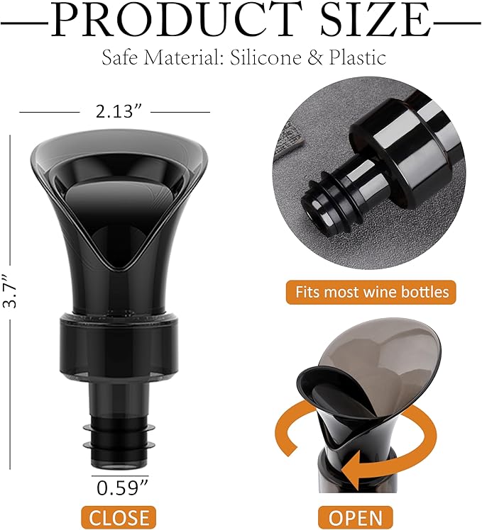 - No more drips and spills: Preventing leakage, dustproof, vacuum preservation, waking up, pouring wine,etc, the wine stopper & pourer fits for screw-top or cork-topped wine bottles, allows for even, consistent wine flow