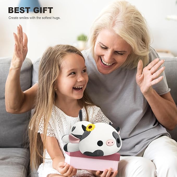 - Premium Quality Plushie Material: 12"(Manual measurement may be 0.5-1.5 inch error).The cow plush toy is made of soft, high-quality fabrics that are safe and non-toxic, providing a cozy and cuddly stuffed animal experience.Parents can rest easy knowing that this stuffed animal pillow has undergone rigorous testing to ensure it is safe for children of all ages.