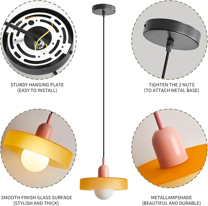 - 💡【Easy to Install】:The pendant light fixture can be installed easily. All necessary accessories and clear installation instructions are included in the package.